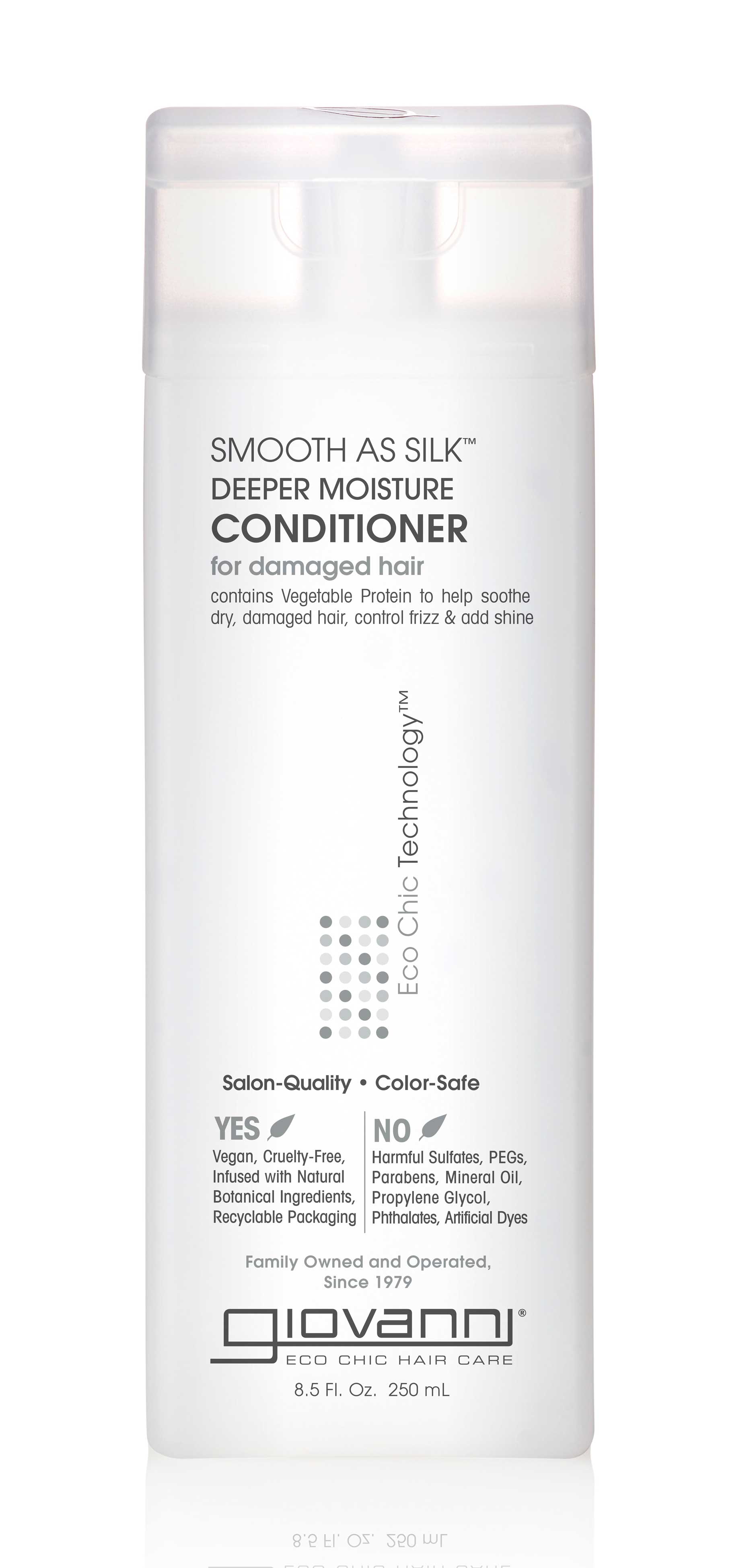 Apply Giovanni’s SMOOTH AS SILK™ conditioner daily after SMOOTH AS SILK™ Deep Moisture Shampoo. Massage through to ends before rinsing thoroughly.